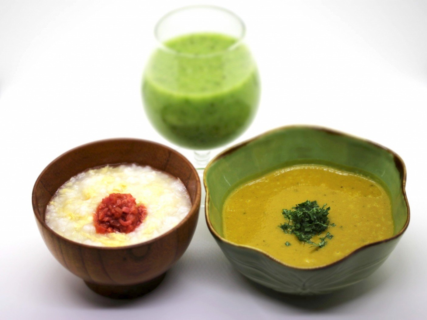 食品では、主菜は柔らかく仕上げたハンバーグの煮込みやあんかけ野菜(大根・かぼちゃなど)のほか、やわらかく仕上げたオムレツや煮卵などの卵料理、主食は五分~全粥などの水分が多すぎないものが該当します。