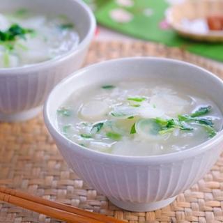 米と水を炊飯器に入れ、お粥モードで炊き上げる。炊き上がったら火を止めて少し蒸らす。